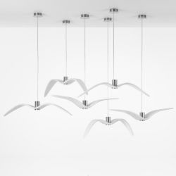 Lampada ispirata al volo degli uccelli, dinamiche e d'impatto visivo. A caratterizzare queste lampade è il particolare metodo di fusione del vetro e la successiva piegatura che riesce delicatamente a plasmare le ali.