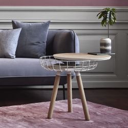 Il tradizionale cesto da cucito della nonna diventa un funzionale tavolino di design, con la duplice funzione di piano d'appoggio e contenitore per i piccoli oggetti della vita quotidiana.