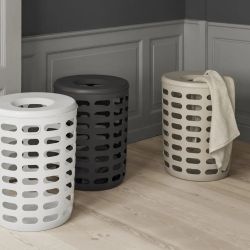Realizzato in plastica resistente e facile da pulire, è dotato di un coperchio con apertura centrale che consente di inserire la biancheria con semplicità, mantenendo l’ambiente visivamente ordinato.