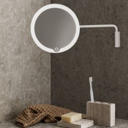 Specchio Modo, girevole e mobile, con ingranditore e anello luminoso.