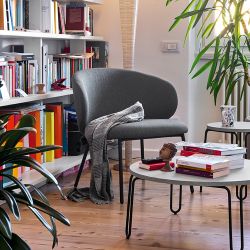 Tuka è una poltroncina comoda e avvolgente, con un design moderno e giovanile, perfetta per la sala da pranzo di casa o per arredare bar e ristoranti.