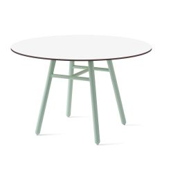 La struttura del tavolo è in alluminio trattato e verniciato per l'utilizzo outdoor, mentre il piano è disponibile in stratificato, spessore 10 mm. Resistente all'abrasione, a urti e graffi, ai comuni solventi e resistente all'ambiente esterno.