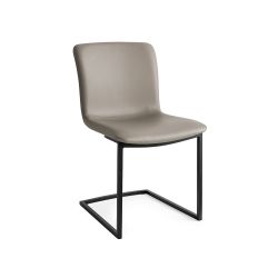 Questa sedia è ideale per arredare la sala da pranzo o locali pubblici come bar e ristoranti. La struttura a slitta sospesa è realizzata con un fusto in acciaio a sezione quadrata 20 x 20 mm. Disponibile verniciata in nero opaco o grigio opaco. Seduta e schienale sono imbottiti in poliuretano espanso e rivestiti in similpelle.