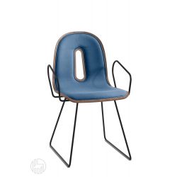 Sedia di design con struttura a slitta, disponibile nella versione senza braccioli oppure con braccioli.