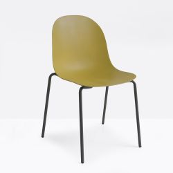 La struttura a quattro gambe è in metallo cromato, oppure verniciato nero, bianco o ottone, mentre la comoda scocca è realizzata in polipropilene, con un'ampia gamma di colori.