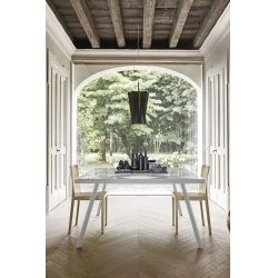 Il tavolo Frame Calligaris unisce così una forma tradizionale al design geometrico. La struttura è in metallo verniciato bianco opaco, mentre il piano è in vetro temprato serigrafato extrabianco opalino.
