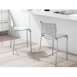 Sgabello ideale per la cucina, con struttura in metallo disponibile nelle finiture cromato oppure verniciato satinato.
