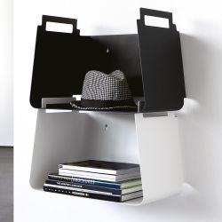 Attrezzato con due comode maniglie che facilitano lo spostamento, Vasu può essere appeso alla parete. Con un semplice incastro è possibile impilare più moduli e comporre una libreria "infinita".