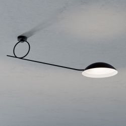 La collezione di lampade Spring ha un design minimal e funzionale. La linea comprende due modelli di lampada da parete, la versione da soffitto e una lampada da terra, tutte caratterizzate da un elemento circolare che ricorda le spille da balia. Realizzata in metallo verniciato piegato su se stesso, nella versione da soffitto la lampada Spring è costituita da un'asta in metallo orientabile con sorgente luminosa decentrata. Il paralume è orientabile a 360° e permette di diffondere una luce diretta, ad esempio sul tavolo, o una luce d'atmosfera nella stanza.