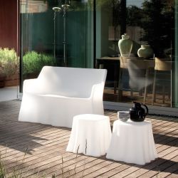 Questo divano è in polietilene, realizzato con tecnologia rotazionale; il materiale è riciclabile e adatto per uso esterno, con ottima resistenza termica e antiabrasiva.