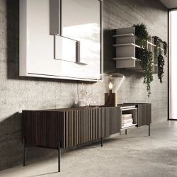 Elemento centrale del soggiorno, il mobile porta TV Zero.22 può integrarsi in modo armonioso col resto dell’arredo oppure dominare totalmente la scena.
