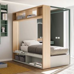 Il letto a baldacchino Beam è caratterizzato da una struttura scenografica ma leggera, capace di unire estetica e funzionalità evoluta. Grazie al secondo letto estraibile con alzata automatica, la cameretta è sempre pronta ad accogliere una seconda persona con la massima praticità e in pochi gesti.