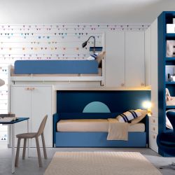 Per chi cerca una soluzione architettonica capace di integrare due letti, contenimento e aree gioco in un'unica struttura compatta e armoniosa. Disponibile in due differenti tipologie: compatti o scorrevoli.