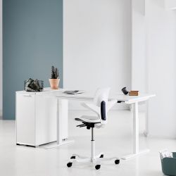 La scrivania Ceres desk è una postazione di lavoro dinamica. Il suo design ergonomico permette di variare la propria posizione quando si lavora, alzando o abbassando l'altezza della scrivania a seconda delle necessità.