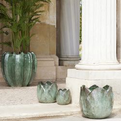 Un omaggio alla delicatezza dei fiori e alla freschezza dei colori naturali: questi vasi in gres, realizzati a forma di tulipano, portano negli ambienti un tocco poetico e contemporaneo.