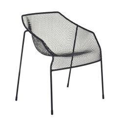 Heaven P con le sue forme armoniche e proporzionate è adatta per l'arredo di giardino e portici. La struttura in acciaio verniciato si combina con seduta e schienale in acciaio, intrecciato come un tessuto.