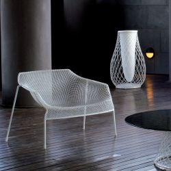 La struttura in acciaio verniciato si combina con seduta e schienale in acciaio, intrecciato come un tessuto.