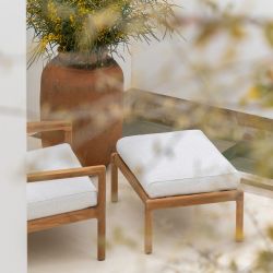 Jack è un elegante pouf da esterno, pensato abbinato alla poltrona della stessa collezione ma perfetto anche da solo per dare un tocco di raffinatezza all'area relax outdoor.