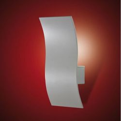 Lampada da parete in metallo, disponibile nei colori bianco madreperlato o alluminio.