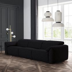 Divano completamente sfoderabile con braccioli ripiegati e poggiatesta reclinabili – su richiesta disponibile sistema a motore per allungare la seduta e inclinare i poggiatesta.