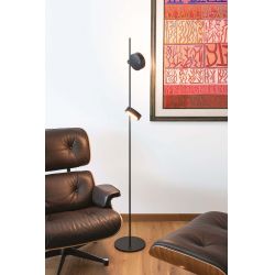 In questa versione da terra, la lampada si può ordinare con uno, due o tre punti luce, da fissare allo stelo della lampada con un perno e un magnete che permette di orientare la luce a proprio piacimento. Ogni sorgente luminosa si può accendere e regolare in modo indipendente, scegliendo l'intensità e la temperatura della luce.