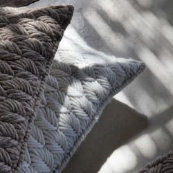 Ricamato a mano il cuscino Chaddar si ispira ai maglioni o alle sciarpe che indossiamo quando vogliamo stare a casa e rilassarci e che realizzano le mamme o le nonne