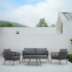 - struttura in teak e alluminio color grigio antracite, corda e cuscino in tinta - abbinati a tavolino antracite.