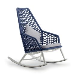 Kos D è una sedia a dondolo adatta all'uso in esterno, pensata per creare una zona relax all'aria aperta.