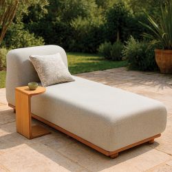 Le linee pulite e la naturale bellezza del teak donano al tavolino un aspetto caldo e raffinato, capace di integrarsi con facilità sia negli spazi esterni sia negli ambienti interni.