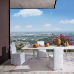 Ideata per resistere all’acqua e alla luce solare e per mantenere nel tempo la forma e l'estetica, questa sedia regala un look elegante e fresco. Il rivestimento si può facilmente sfoderare, sfilandolo dall'alto come fosse un abito.