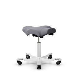 Caratterizzato dalla seduta a forma di sella ispirata ai cavallerizzi, questo sgabello permette di muoversi in modo dinamico quando si è seduti alla scrivania o al tavolo di lavoro.
