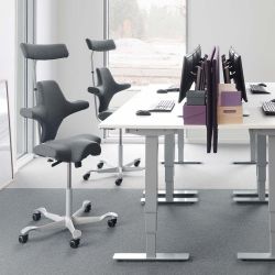 Ispirata alla caratteristica postura dei cavallerizzi, questa sedia da ufficio presenta seduta a forma di sella che favorisce il movimento ed il cambio di posizione per una seduta sempre attiva.