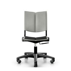 Nella versione standard, questa seduta è dotata di ruote morbide, adatte a pavimenti duri (es. parquet, cemento, ceramica), Ø 50 mm.