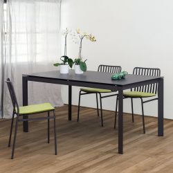 Tavolo allungabile con struttura in acciaio laccato. Le sue dimensioni sono davvero ridotte e si adatta perfettamente ad arredare piccoli spazi. Ha un design leggero e snello, caratterizzato dalle gambe a sezione triangolare.