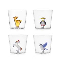 Realizzato a mano in vetro borosilicato, il bicchiere sorprende con una piccola scultura in vetro soffiato custodita alla base: creature magiche e animali incantati ispirati al mondo delle foreste popolano ogni bicchiere, trasformando ogni sorso in una piccola fiaba.