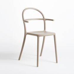 La sedia con braccioli, ideale sia per l'arredo della cucina che del giardino, è presentata in un'ampia gamma cromatica con finitura opaca.