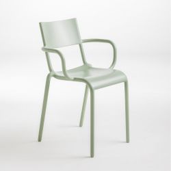 La sedia con braccioli, ideale sia per l'arredo del living di casa che del giardino, è presentata in un'ampia gamma cromatica con finitura opaca.
