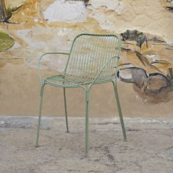 La sedia è realizzata in acciaio zincato e verniciato, estremamente resistente a intemperie, sbalzi di temperature e ambienti ad alto tasso di salinità.