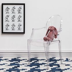 Sulle orme della Louis Ghost nasce la versione dedicata ai più piccoli, la sedia Lou Lou Ghost. Realizzata in policarbonato, un materiale solido, leggero, a prova di urti e resistente agli agenti atmosferici. Grazie a queste qualità, Lou Lou Ghost può accompagnare i vostri bambini anche nel giardino!