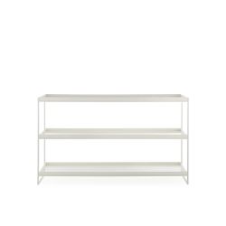 Il tavolino della collezione Trays si ispir all'estetica dei vassoi laccati orientali, reinterpretandoli con materiali contemporanei. Caratterizzato da linee essenziali e squadrate. Il piano sembra "galleggiare" sulla struttura metallica, creando un effetto di grande leggerezza visiva.