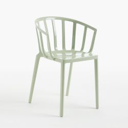 Perfetta sia per come sedia da cucina, poltroncina da salotto o in giardino, Venice è interamente realizzata in policarbonato colorato in massa verde lucido. Impiabile fino a due unità.