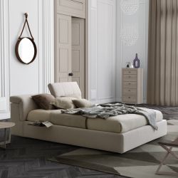 Questo letto matrimoniale ha un design moderno e una comoda testiera dotata di poggiatesta regolabili in varie posizioni.