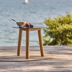 Questo tavolino da caffè è un complemento di arredo versatile per l'outdoor o per gli spazi interni di casa. Realizzato con struttura in teak e piano in alluminio verniciato, è adatto ad uso esterno.