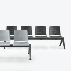 Panca moderna per sale d'attesa, con struttura in metallo verniciato nero o grigio alluminio e seduta in lamiera forata in tinta.
