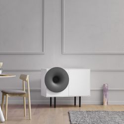 Questa madia dall'aspetto vintage è un innovativo esempio di come possano interagire arredamento e tecnologia.