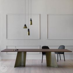 Aspetto scultoreo per Maggese, tavolo fisso rettangolare che si presta a essere collocato al centro della scena.