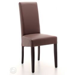 Sedia moderna, realizzata in legno massello di faggio, con seduta e schienale completamente imbottiti e rivestiti. Una sedia elegante ed essenziale, che fa del materiale di rivestimento il proprio elemento decorativo; perfetta per arredare con classe e modernità il soggiorno o la sala da pranzo.
