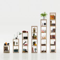 Partendo dal modulo base è possibile impilare fino a 6 elementi, creando torri di diverse altezze che assolvono ai più diversi utilizzi, dal comodino fino alla libreria. Fra un modulo e l'altro sono collocate delle giunzioni in metallo dello spessore di 1,5 mm circa.