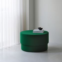 Il Pouf Silo ha una forma rotonda ed essenziale.