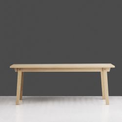 Slice è un tavolo realizzato in legno di quercia trattato con sapone, particolare trattamento che dona alla quercia una meravigliosa tonalità naturale. Le gambe sono in massello; il piano rettangolare è costituito da tre tavole posizionate una accanto all'altra: gli spazi tra ognuna di esse conferisce leggerezza all'intera struttura. Il piano è in impiallacciato di rovere naturale.